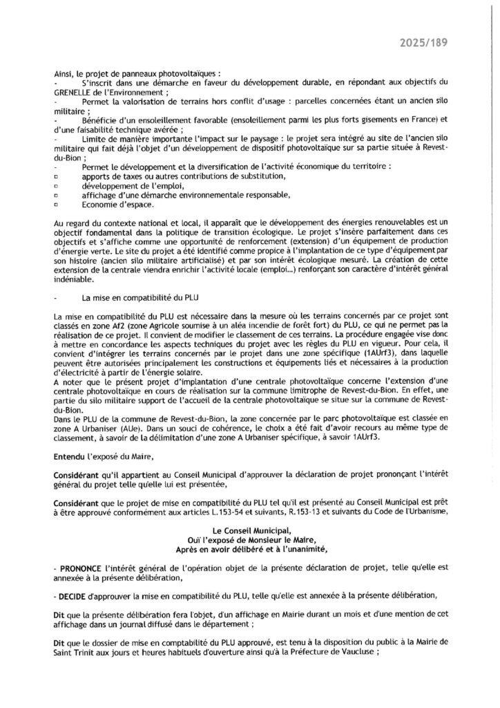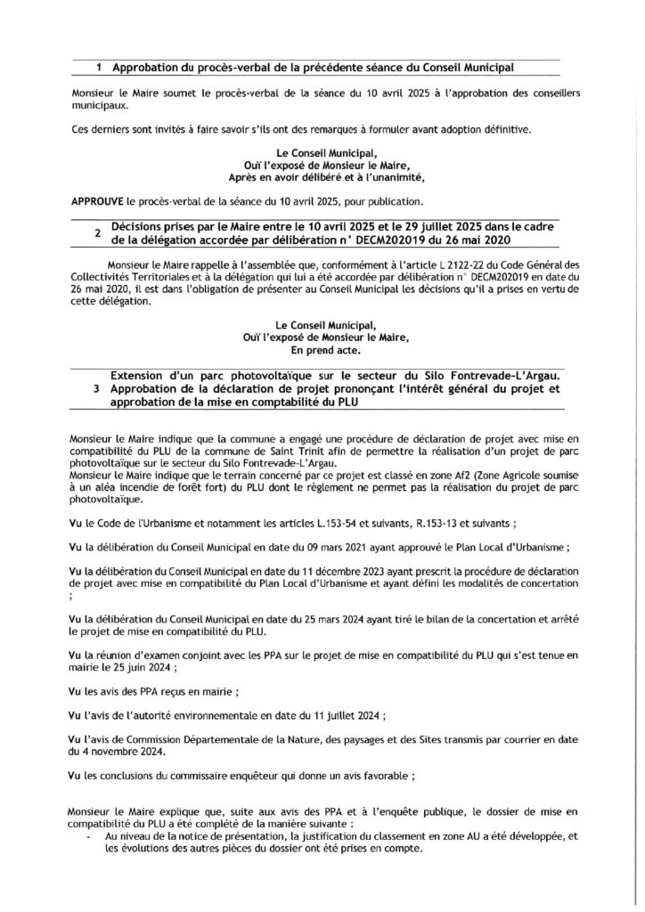 3- Extension dâun parc photovoltaĂŻque sur le secteur du Silo FontrevadeâLâArgau. Approbation de la dĂ©claration de projet prononçant lâintĂ©rĂȘt gĂ©nĂ©ral du projet et approbation de la mise en comptabilitĂ© du PLU.
